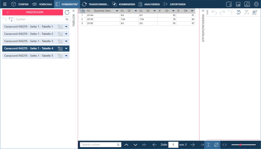 Nach dem Definieren Ihrer Tabellen in Monarch Table Extractor können Sie diese in Monarch Data Prep Studio importieren. Nachdem die Tabellen importiert und geladen wurden, können Sie sie wie jede andere Tabelle in Monarch Data Prep Studiobearbeiten.