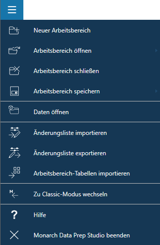 Wählen Sie Arbeitsbereich öffnen oder Arbeitsbereich aus Altair Monarch-Server-Bibliothek öffnen aus.