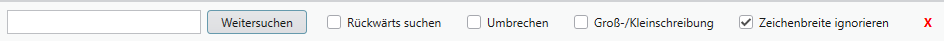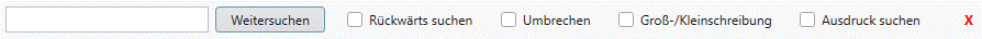 Um die Suche zu beenden und das Suchfeld zu schließen, wählen Sie STRG+F oder markieren Sie das rote Kästchen x auf der Seite des Suchfeldes.