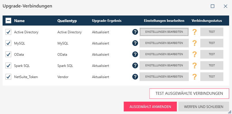 - Aktualisiert – Dieses Ergebnis bedeutet, dass die erforderlichen Werte im neuen Connector-Treiber mit denen im alten Connector-Treiber übereinstimmen.