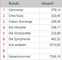 Beim Erstellen der Summierung werden alle mit den Schlüsselfeldwerten oder -bereichen verknüpften Werte, die nicht spezifiziert sind, unter der eingegebenen Bezeichnung angesammelt und in der Summierung als separate Zeile angezeigt.