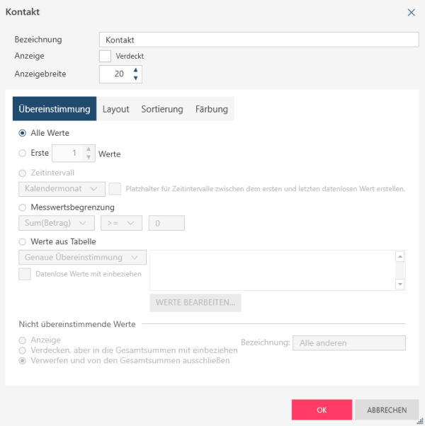 Innerhalb von Werte aus Tabelle haben Sie drei Zuordnungsmöglichkeiten: