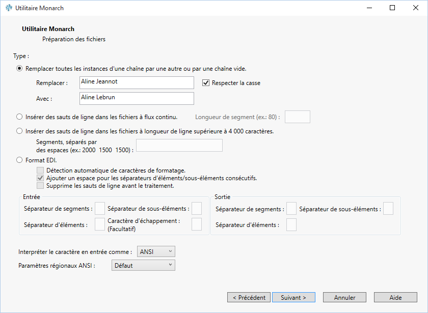 Démarrez l'assistant Utilitaire Monarch et sélectionnez l'option Préparer les fichiers pour Monarch (remplacements, sauts de ligne, EDI). Cela fait, cliquez sur Suivant.