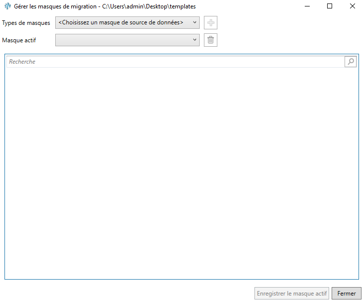 - Cliquez sur le bouton Gérer les masques de migration. La fenêtre Gérer les masques de migration apparaît.