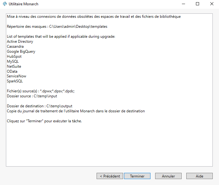 - Si un espace de travail ou un fichier de bibliothèque ne contient pas de connecteurs de données nécessitant une mise à niveau, l'opération de mise à niveau est omise.