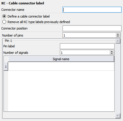 - Define a cable connector label with the following parameters.