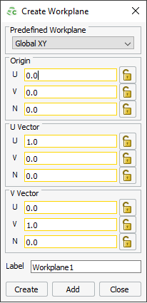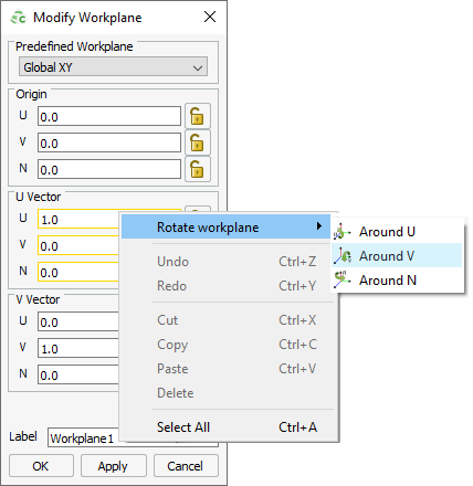 Under Predefined Workplane in the drop-down list, select a reference workplane.