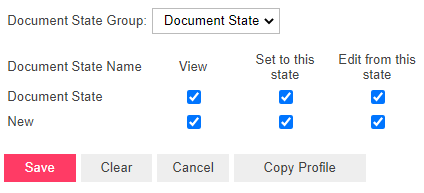 From the Document State Group drop-down list, select the appropriate document state group. The list of document states assigned to the selected document state group appears.