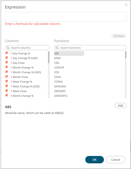 .To search for a particular column or function, enter it in the Search Columns/Search Functions box.