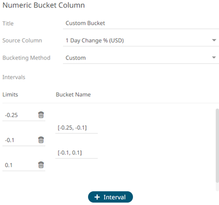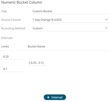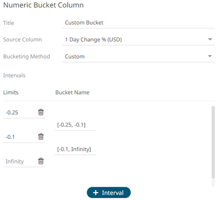 - Select Custom in the Bucketing Mode drop-down list box.