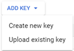 - Click CREATE CREDENTIALS and choose Service Account Key to create credentials for the service account authentication
