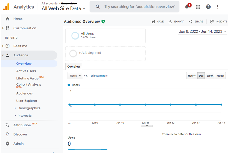 - Check the URL. For example: https://analytics.google.com/analytics/web/#/report-home/a141137636w202161341p196007843