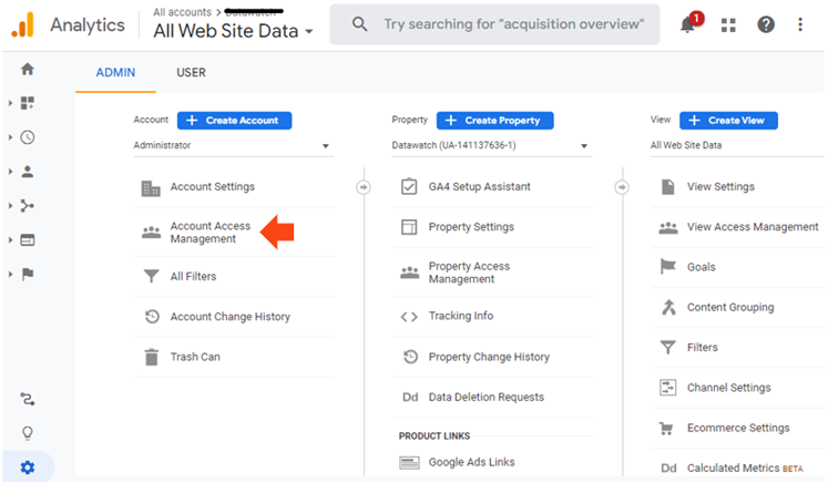 - The administrator grants permissions to the user in the Admin > User Access Management page in their Google Analytics account.
