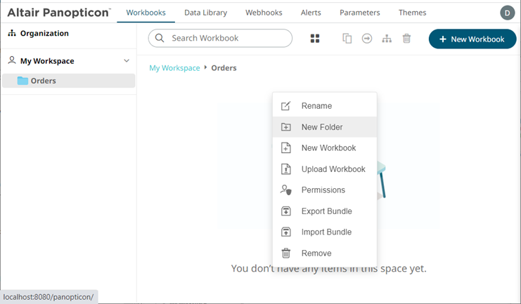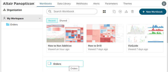 - On the workbooks/folders list
