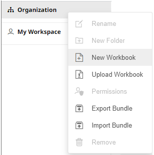 on the Welcome or Workbooks page. - Right-click on a folder or sub-folder then select New Workbook in the context menu on the Workbooks page.