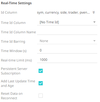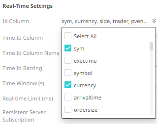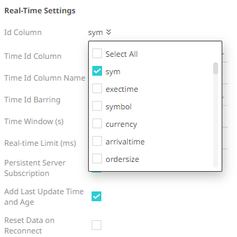 Consequently, on the Real-Time Settings section, the Id Column drop-down list displays the set of columns, of arbitrary type.