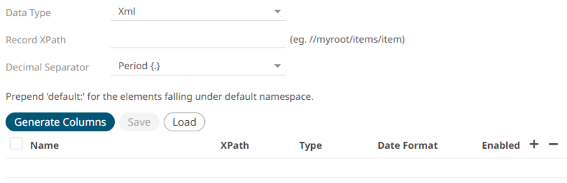 If XML is selected, enter the Record XPath which allows the identification of multiple records within the XML document (e.g., //myroot/items/item).