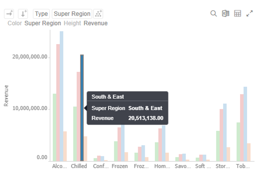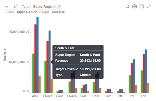 For example, when the Height variable column is Revenue and set to Visible, the value of Revenue is displayed in the Details pop-up.