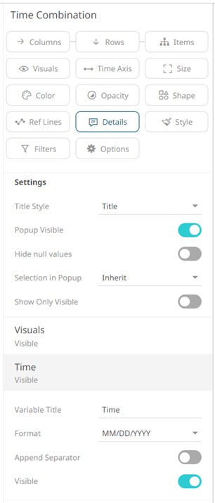 Sample 3: Time Combination visualization has Visuals and Time variables.