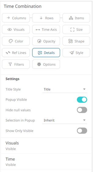 - For time series visualizations, you can set the current time period that will be displayed on the Details pop-up. Otherwise, skip to step 23.