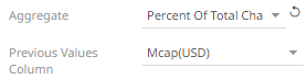 - If you set the aggregation method to Percent of Total Change, the Previous Values Column drop-down list is enabled and displays a list of numeric data columns in the selected data table that can be used as the previous column for the aggregate.