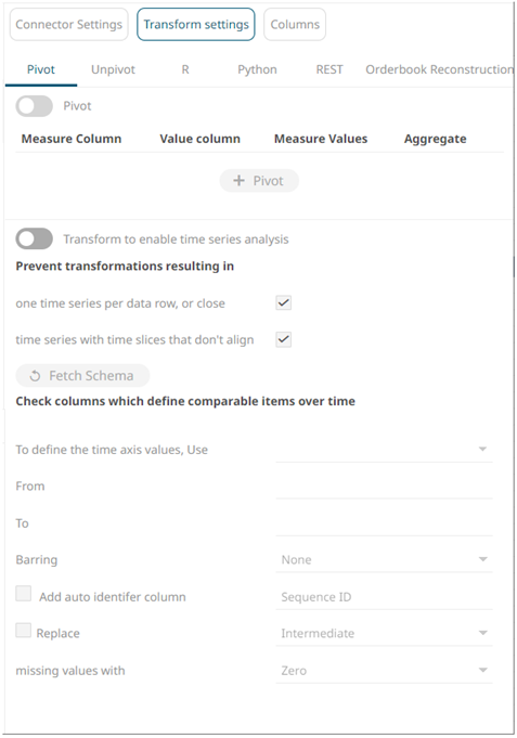 - Click the Transform Settings button. The Transform Settings pane displays.