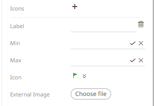 - Specify the numeric range (Min and Max) to display the icon. Leaving the Min and Max fields empty implies no limit.