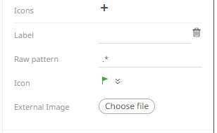 - The Raw Pattern field lets you specify a text string. When a node in the visualization matches the text string, the corresponding icon is displayed. Leaving the Raw Pattern field empty creates a match on non-empty strings.