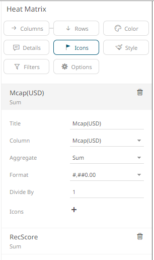 Clicking the Add Icon button with a numeric column displays a new section where you can specify: