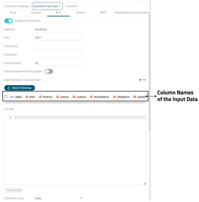to see the output columns from the R transform. - Refer to Enable Time Series Analysis for more information in enabling this feature.