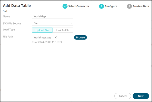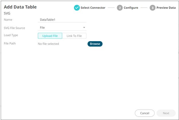 The number of steps in the Add Data Table Wizard will be based on whether you selected a data table from the Data Library or a connector to configure.