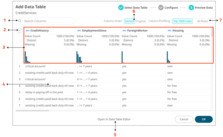 NOTE: The maximum number of rows displayed in the Data Preview is 100.