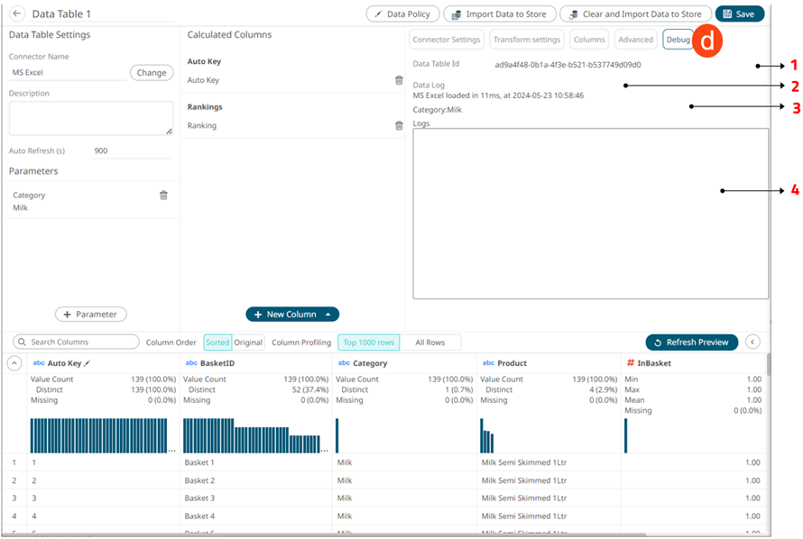 Most of the sections in this editor are available in Workbook Internal Data Table Editor. However, you can only create a single data table in this editor. To join data tables, you can use the Joined Data Table Editor.