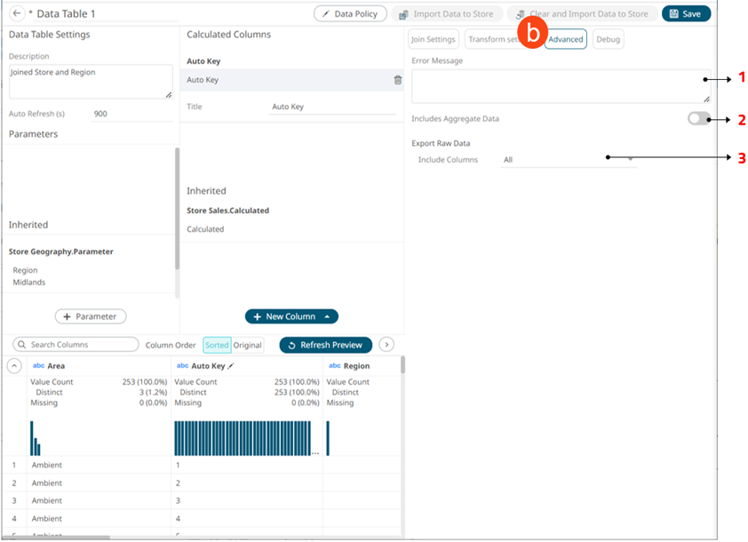Calculated Columns Allows you to view and manage the calculated columns. The inherited calculated columns from the joined data tables are also displayed. |