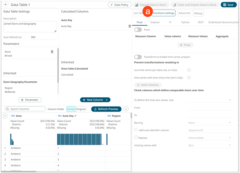 displays the Transform Settings pane.