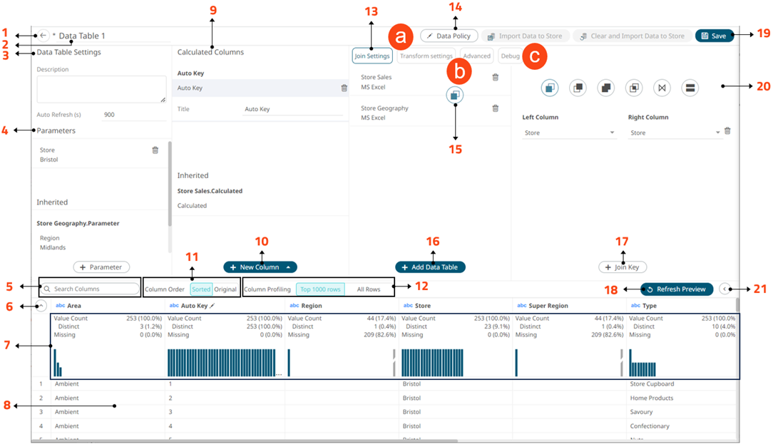 Join Data Table Editor Sections and Definitions