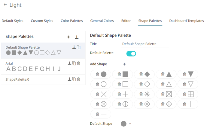 NOTE: The default shape palette can not be deleted.