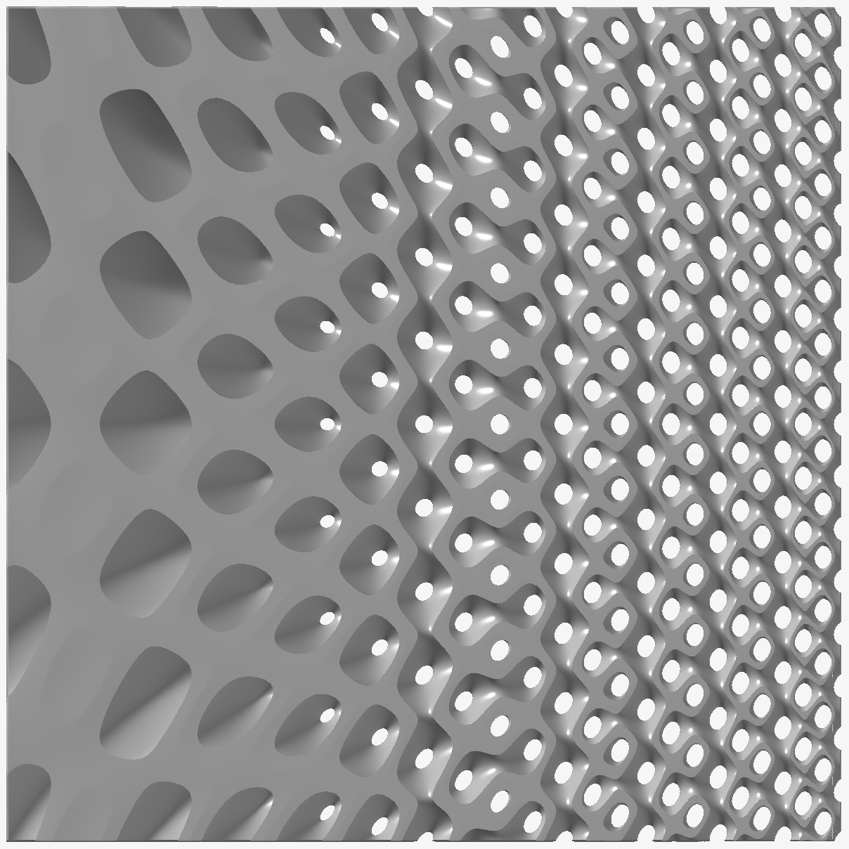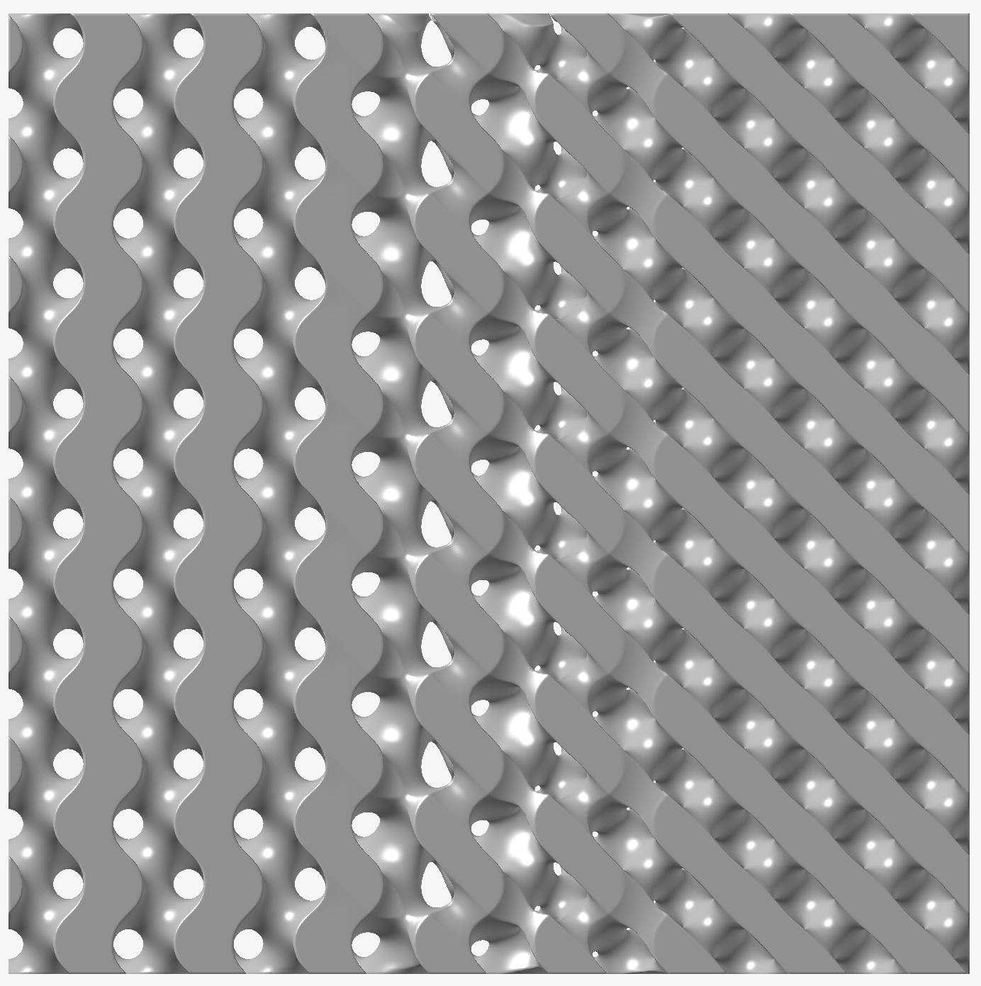 shows a Gyroid morphing into a Schwarz D lattice, moving from left to