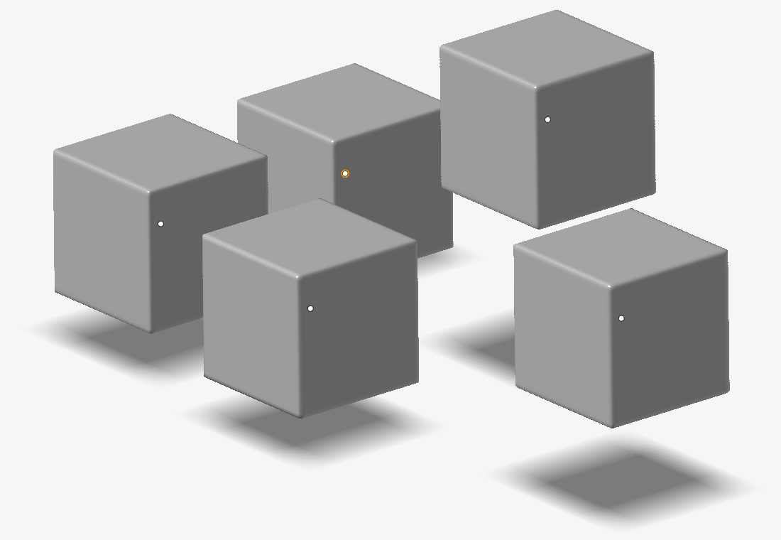 The Pattern operation takes a user-selected body and distributes multiple identical instances according to patterning rules. Three high-level pattern types may be constructed: rectangular, circular, or point cloud.