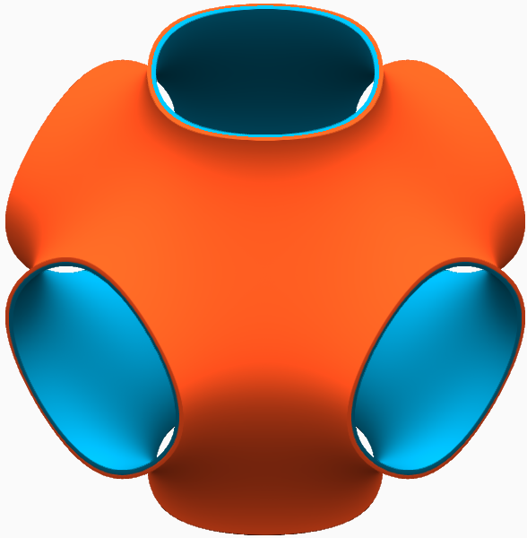 Surface - Unit Cell Select a unit cell type. In the following images, the surface that creates the lattice has been shown with blue coloring on one side of the surface and orange coloring on the other. These infinitely thin surfaces are transformed into solid volumes using the Surface Type options (Single and Double), which are described in the next section.