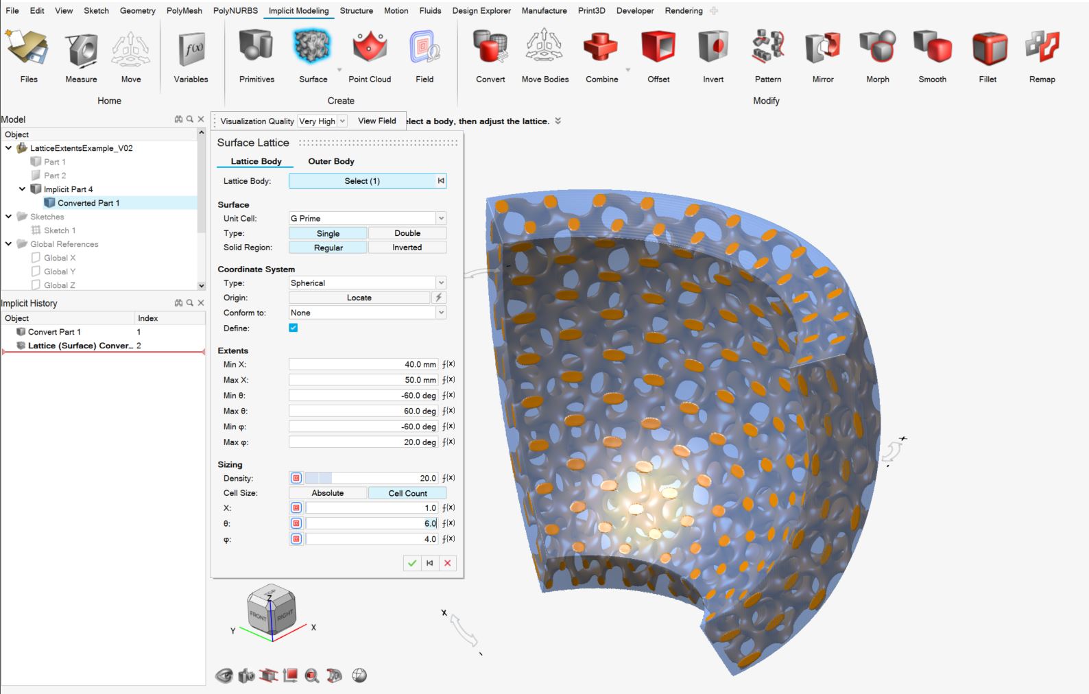 1. On the Implicit Modeling ribbon, select the Surface Lattice tool.