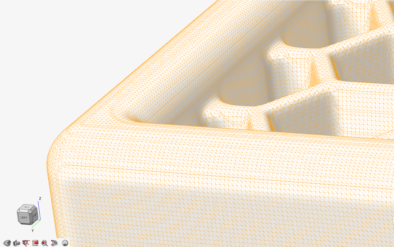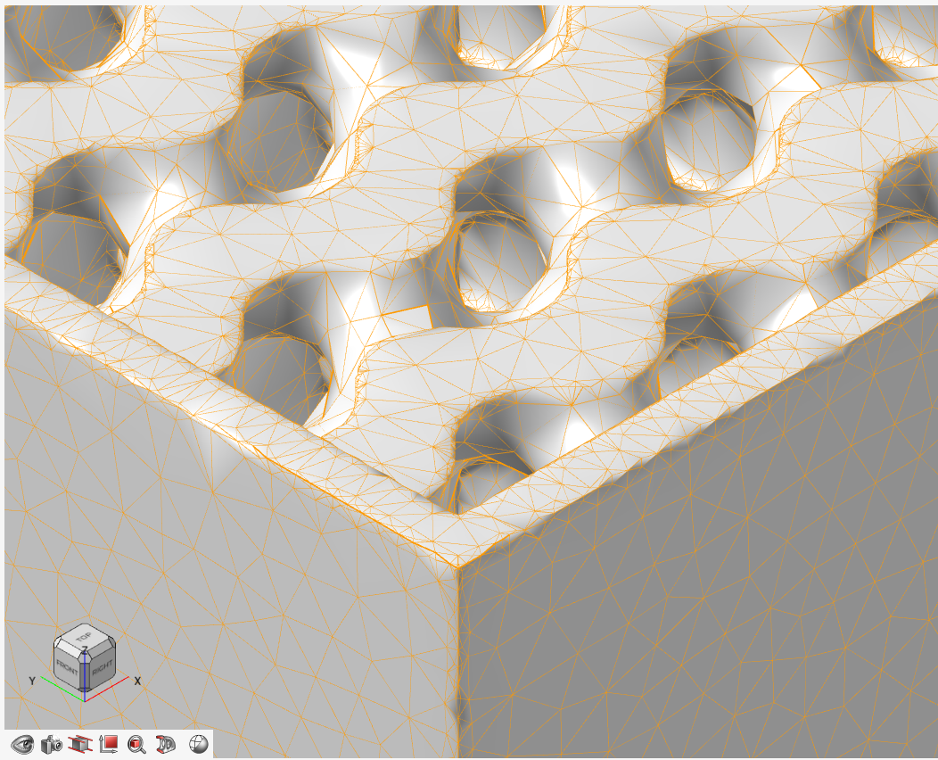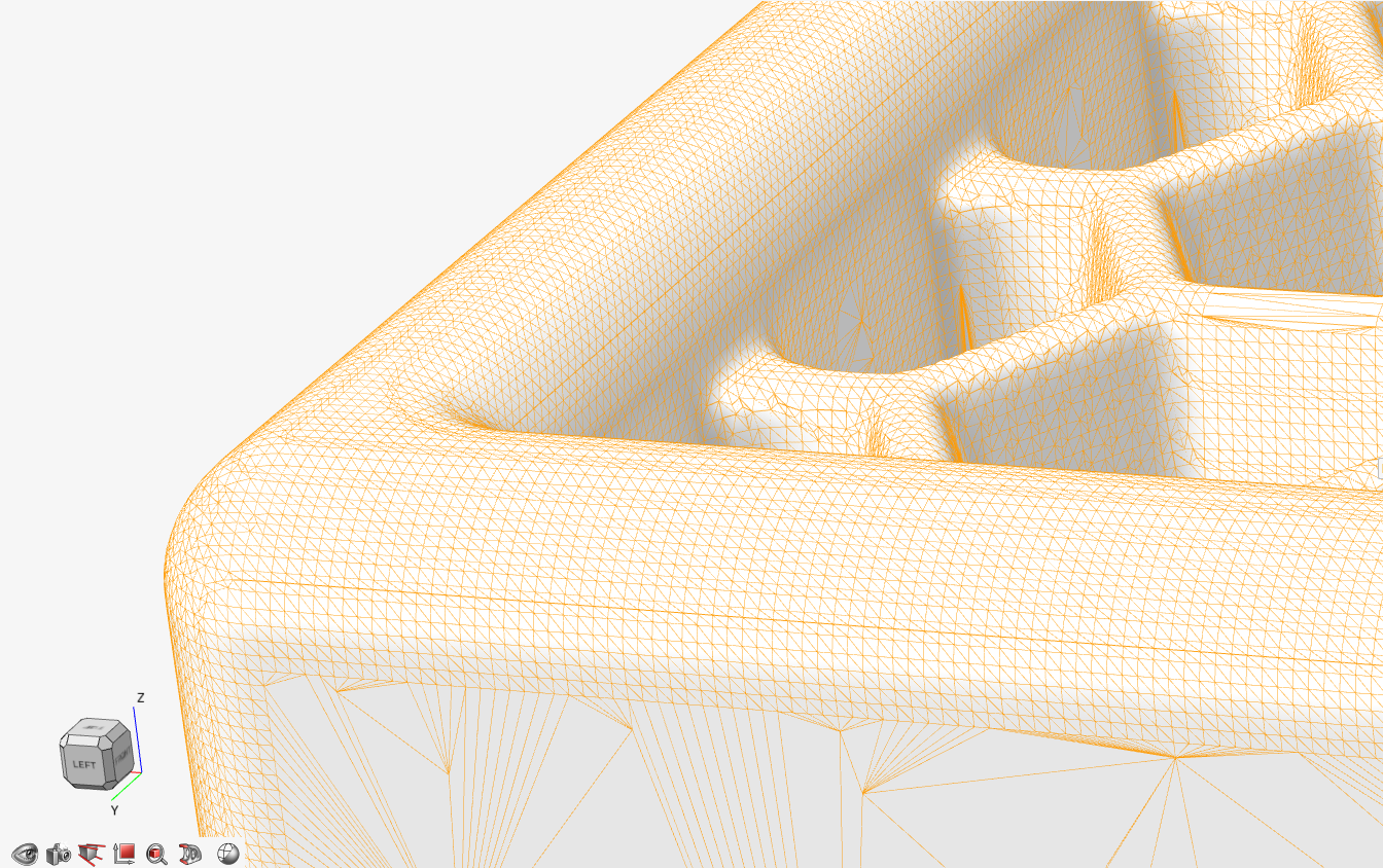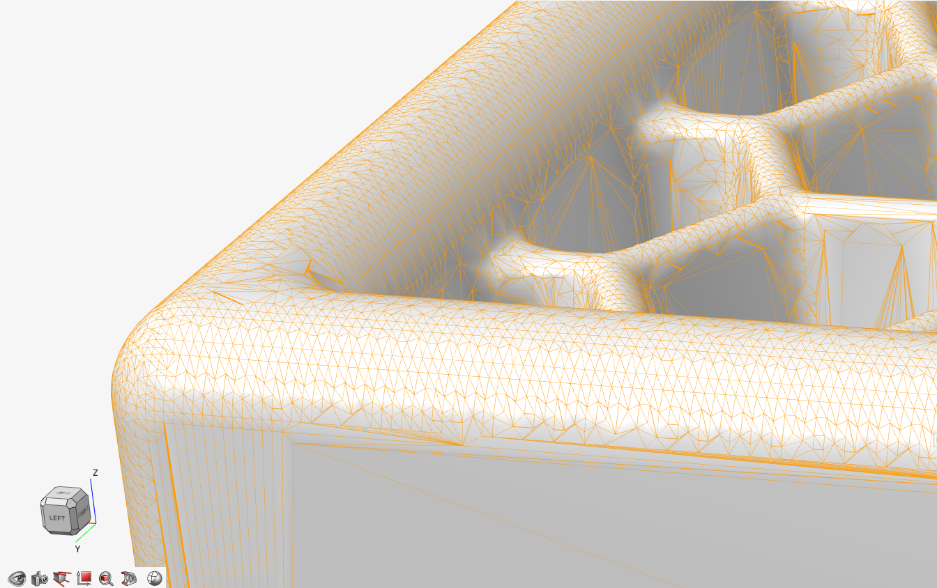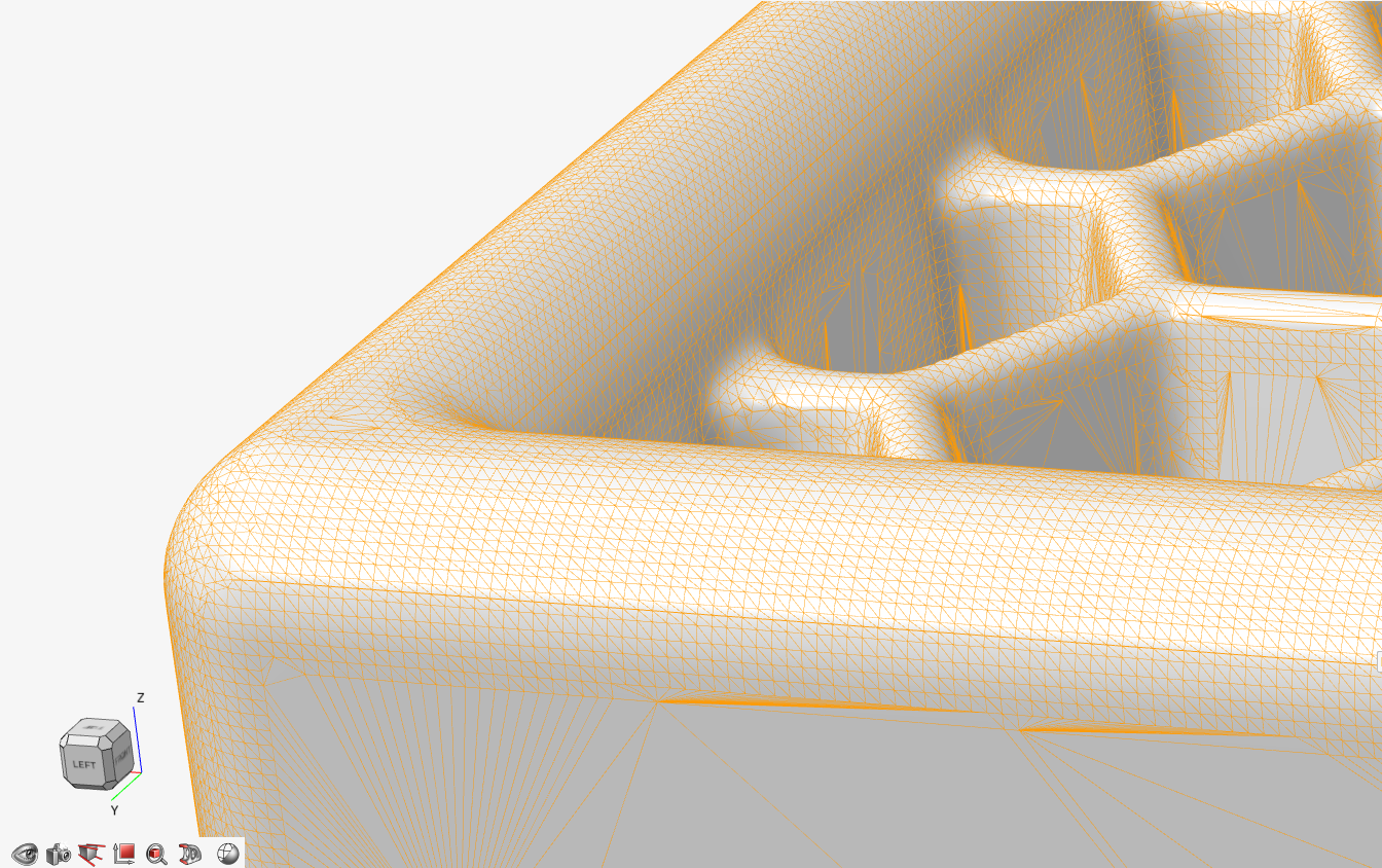 Firstly, you should note that the quality of the mesh that is produced in the conversion relates directly to the Visualization Quality setting that was used during Implicit Modeling. If the Very High setting was used, the triangle mesh will be very fine, as shown in the image below. Using progressively lower Visualization Quality settings will produce increasingly coarse meshes.