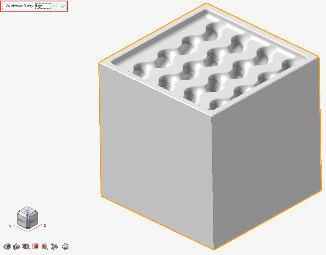 A good habit to form is to change the Visualization Quality to suit what you are doing at any given time. For example, computationally intensive operations, such as using Convert in Implicit Modeling, might be best attempted at a lower Visualization Quality first, then increasing the quality when you are satisfied that the operation is running correctly. Conversely, when creating models for export or render, it is recommended to try and use the highest feasible Visualization Quality for your computer.
