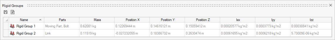 The Rigid Groups table allows you to review all of the rigid groups in your model and