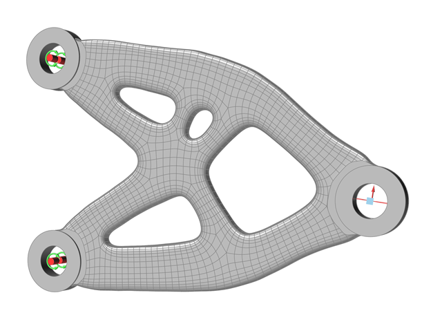 - Intersects the PolyNURBS part with the original design space to ensure the new part is aligned with the non-design regions and doesn't extend beyond the original design space volume.