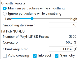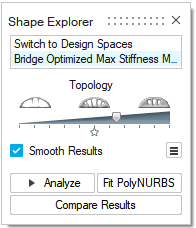 Click the Fit PolyNURBS button on the Analysis Explorer to fit a PolyNURBS to the generated shape. It is best to smooth the results before attempting to fit a PolyNURBS to the results. You can do this by turning on the Smooth Results option.