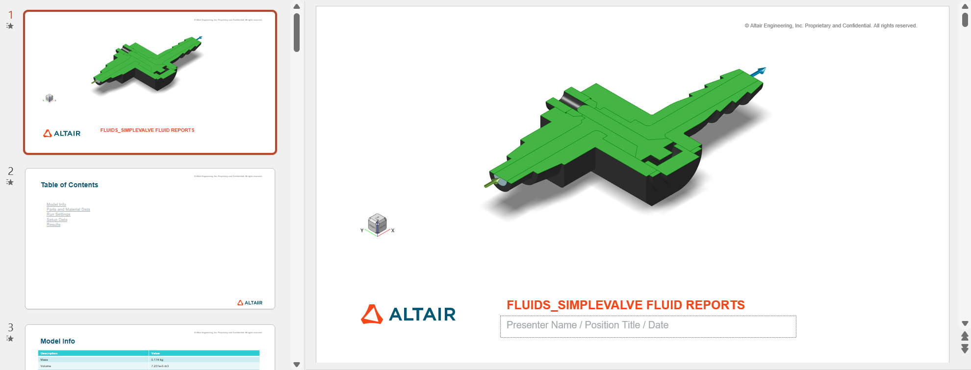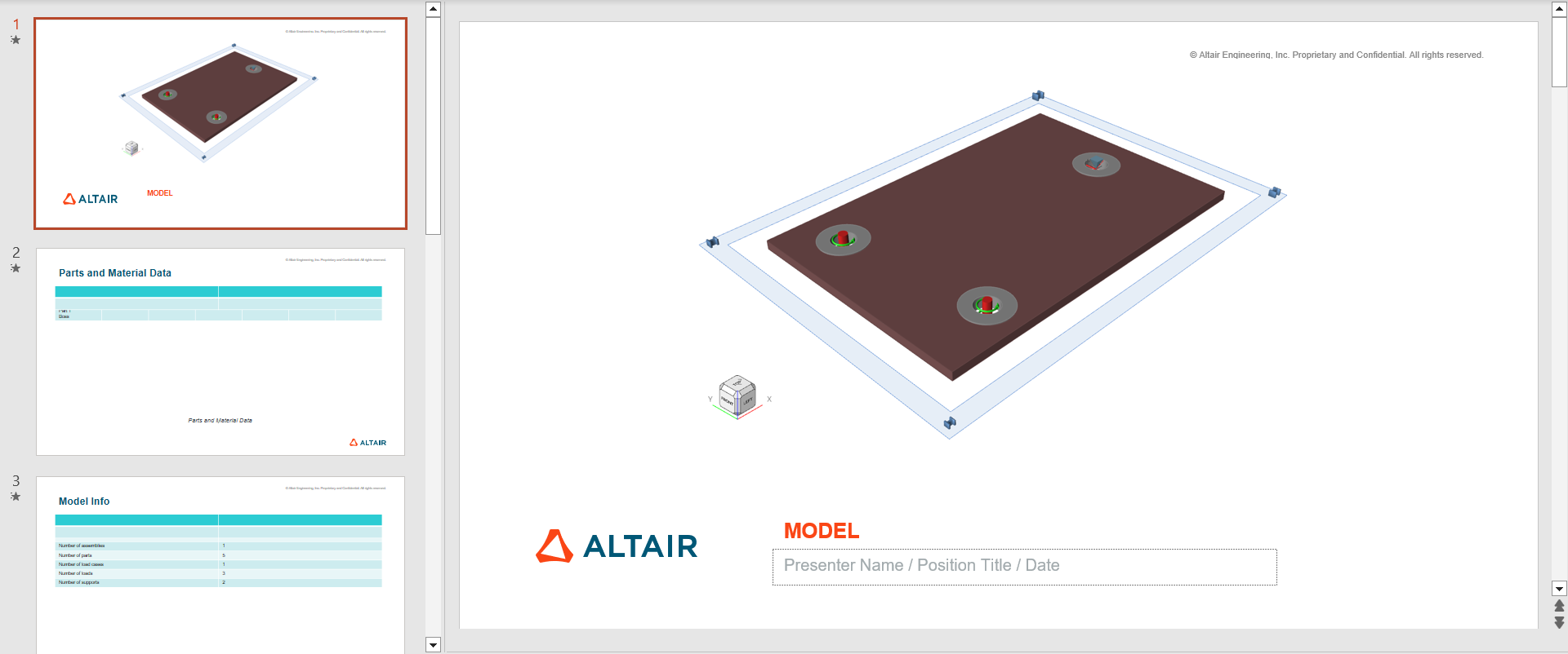 Generate an analysis report using the saved settings. You can export the report as a .ppt or .pdf file.
