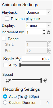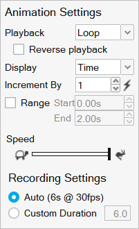 Use the animation toolbar to play, record, and configure the animation.