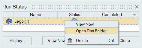 Right-click on the name of the run and select View