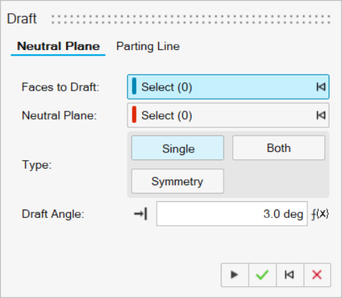 - Single (default): Create the draft on one side of the parting line.